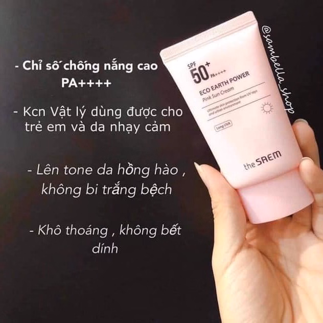 Kem Chống Nắng Giảm Dầu, Giúp Da Sáng Hồng Tự Nhiên The Saem Pink Sun Cream Ex Spf50+/Pa++++ với công thức kem chống nắng dịu nhẹ cho làn da nhạy cảm, bảo vệ da thoải mái khỏi tia Uv và làm dịu da bằng các tia Uv vật lý 100% ngăn chặn công thức và bột làm dịu calamine màu hồng. Phiên bản mới của sản phẩm thay đổi các thành phần tốt hơn nâng cao chức năng và cảm giác khi sử dụng.