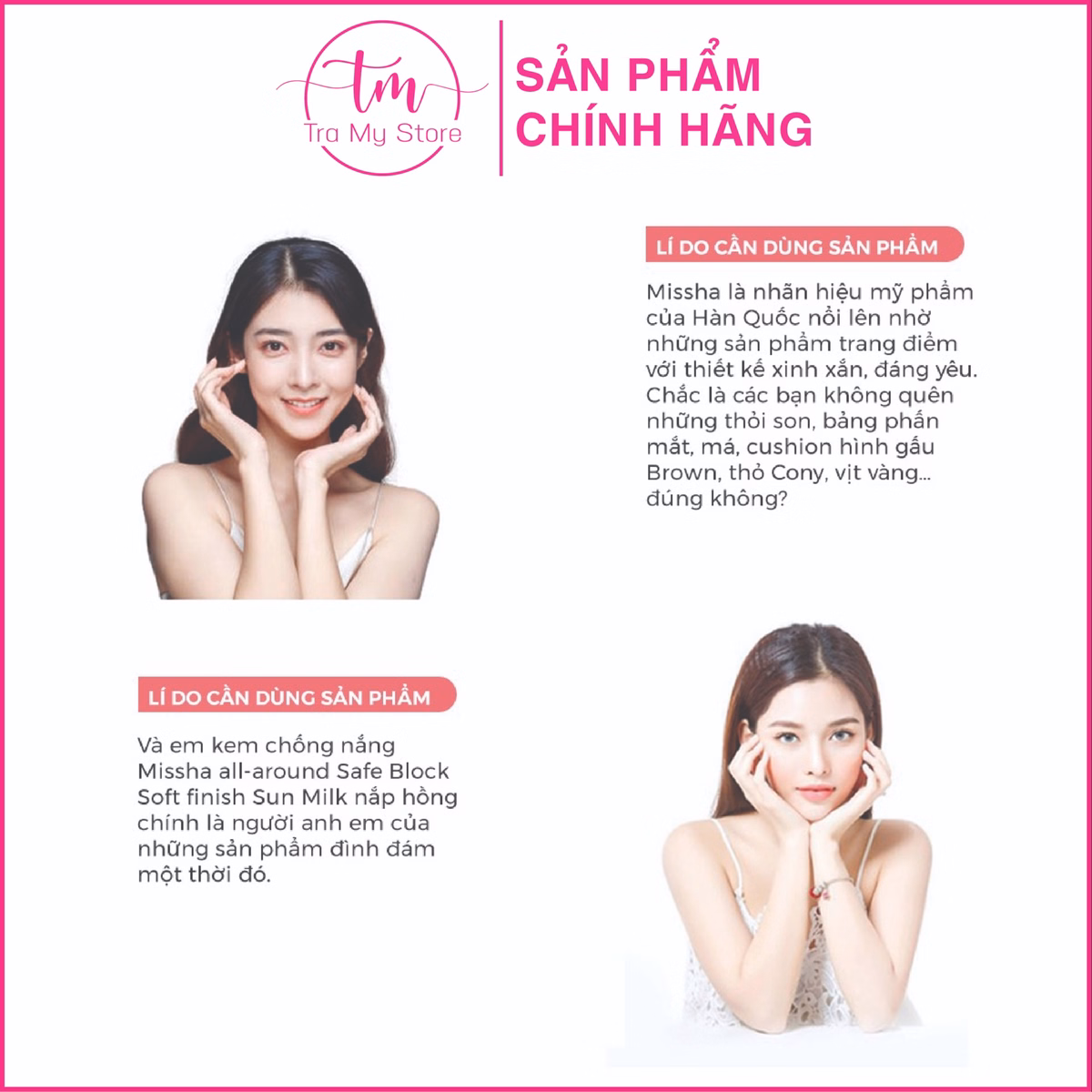 Missha là nhãn hiệu mỹ phẩm của Hàn Quốc nổi lên nhờ những sản phẩm trang điểm với thiết kế xinh xắn, đáng yêu. Chắc là các bạn không quên những thỏi son, bảng phấn mắt, má, cushion hình gấu Brown, thỏ Cony, vịt vàng… đúng không. Và em kem chống nắng Missha all-around Safe Block Soft finish Sun Milk nắp hồng chính là người anh em của những sản phẩm đình đám một thời đó.