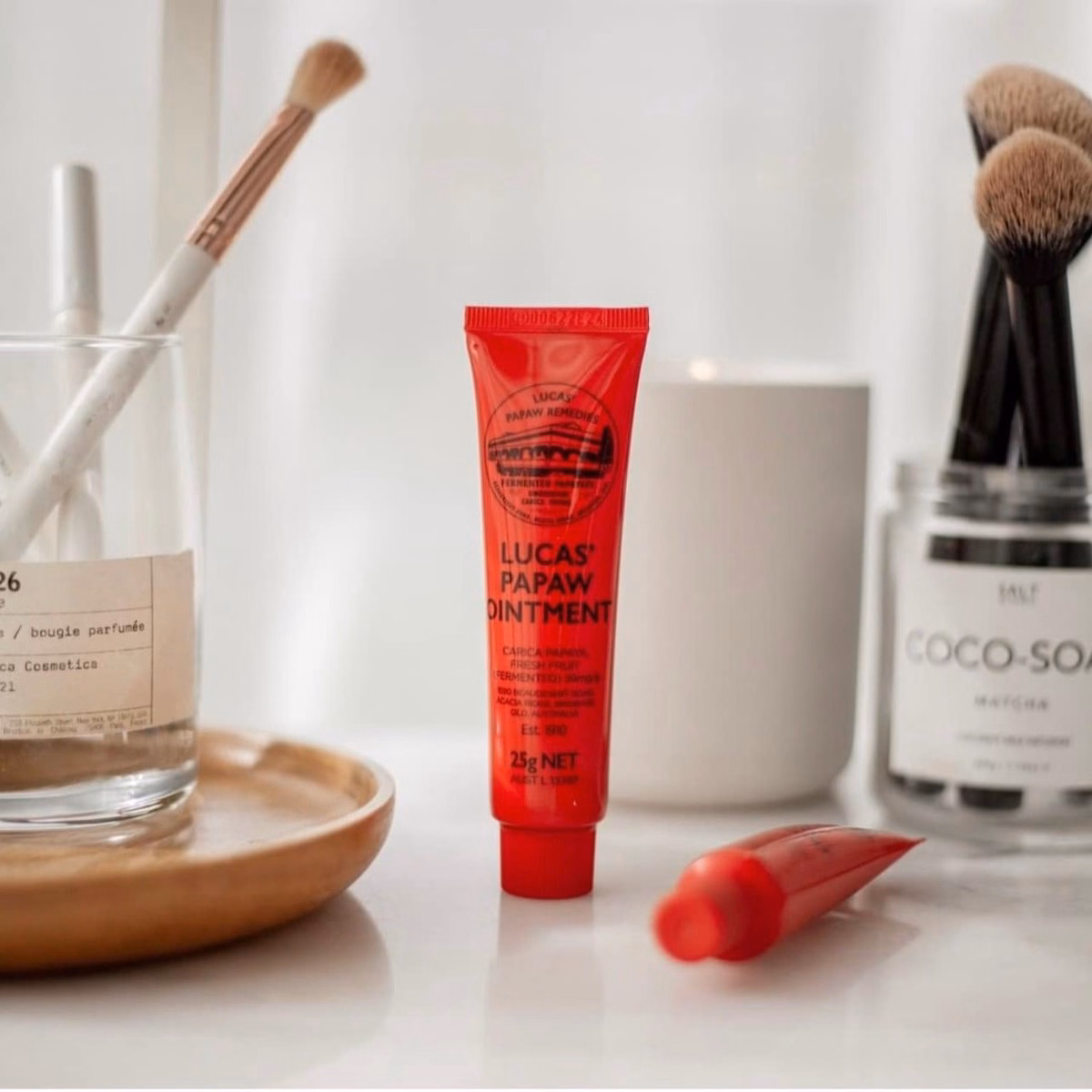 – Kem đa năng Lucas Papaw Ointment thực là sự một tuýp kem “nhỏ mà có võ”. Đây được xem là món đồ làm đẹp không thể thiếu với các cô nàng và các bé trong mùa đông. Được thiết kế với tác dụng chính là chống nứt nẻ môi, tuy nhiên tuýp kem nhỏ bé này còn làm được nhiều hơn thế đúng nghĩa với từ đa năng. Không chỉ làm mềm da, mang đến sự mịn màng cho những vùng bong tróc trên cơ thể bạn, Lucas Papaw Ointment còn có thể làm lớp lót trang điểm, giữ nếp tóc, phòng tránh viêm da…