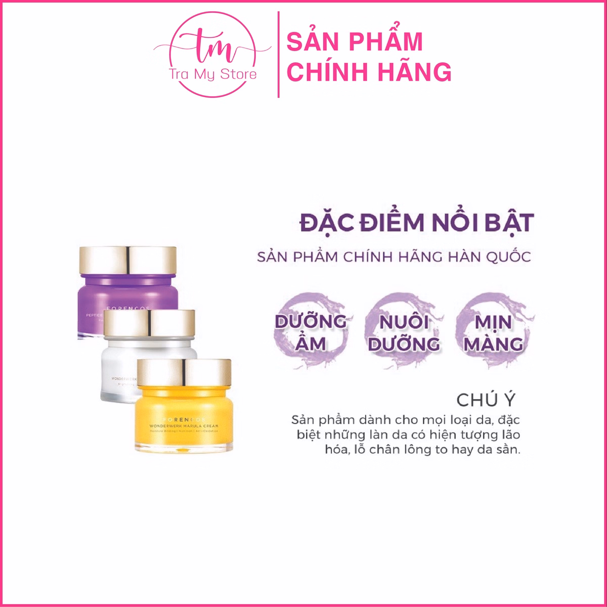 Forencos Wonderwerk Marula Cream giúp săn chắc bề mặt da, xóa vết châm chim, ngăn ngừa lão hóa và làm da rạng ngời không tuổi.