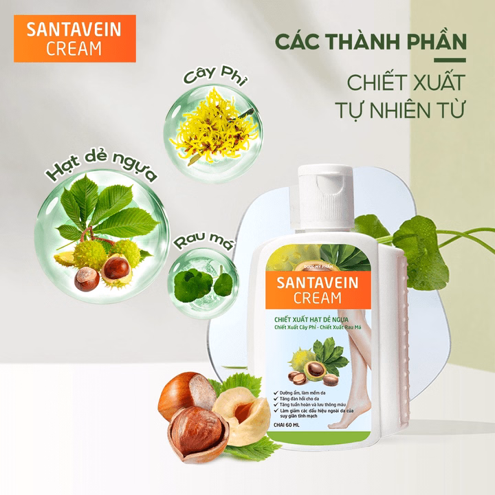 Sở hữu công thức độc đáo, cùng những thành phần “vàng mười” từ thiên nhiên, như: Chiết Xuất Hạt Dẻ Ngựa, Chiết Xuất Cây Phỉ, Chiết Xuất Rau Má… Santavein Cream tích hợp nhiều ưu điểm vượt trội: