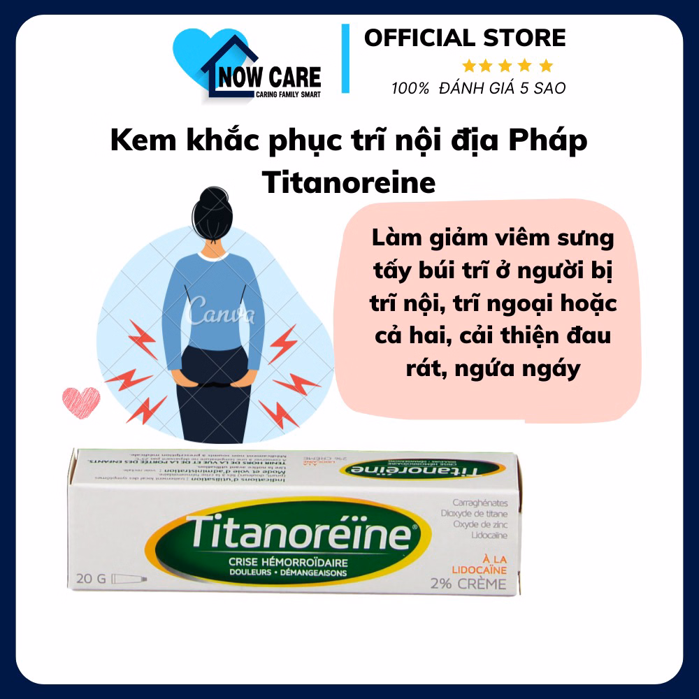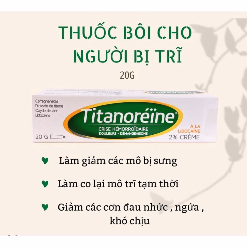 Kem bôi trĩ Titanoreine của Pháp giúp làm giảm các biểu hiện như ngứa, đau rát và sung huyết do trĩ gây nên. Bên cạnh đó, sản phẩm còn giúp hỗ trợ co búi trĩ.