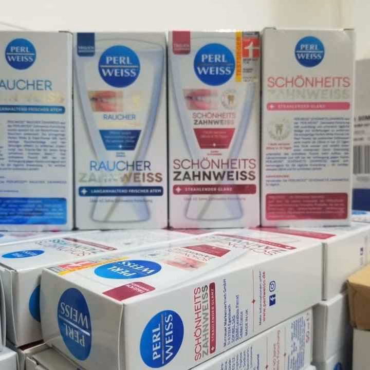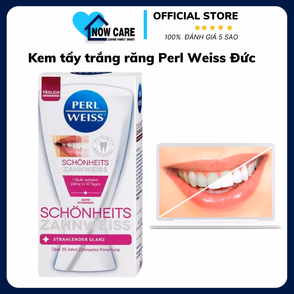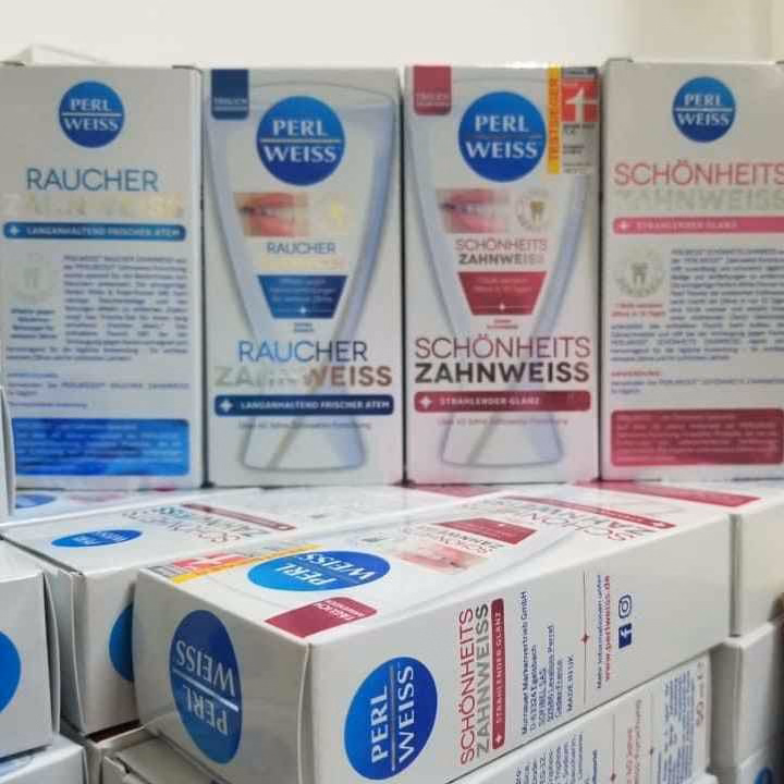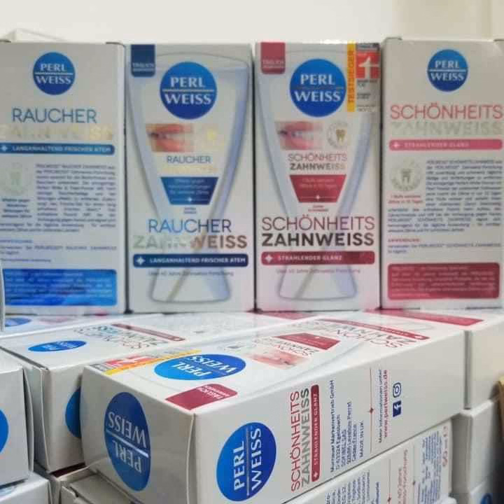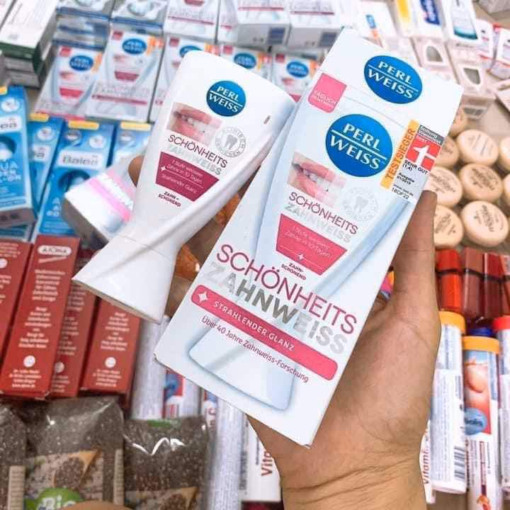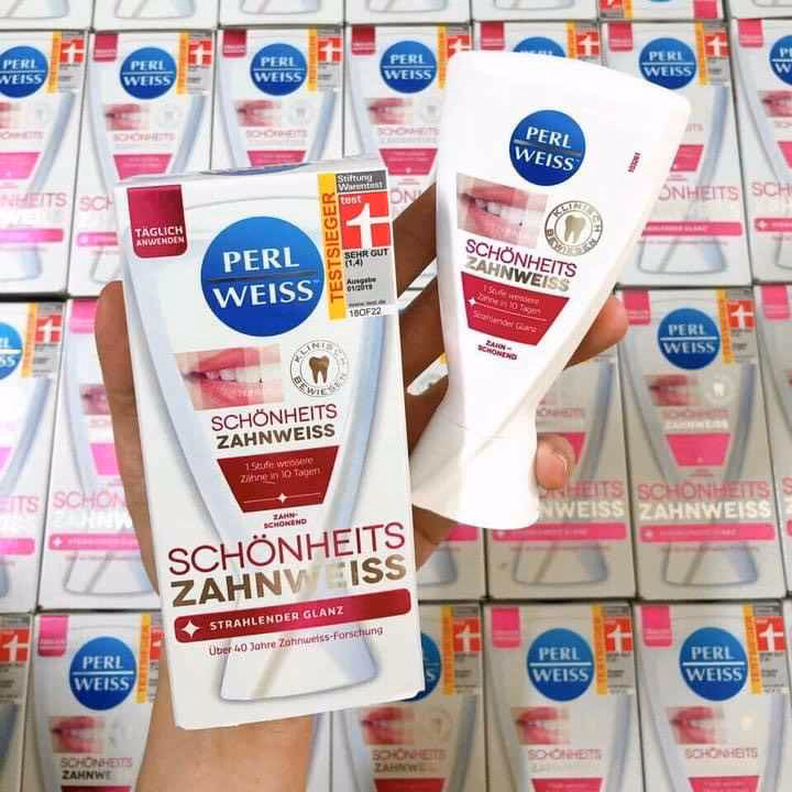 Kem đánh răng Perl Weiss (màu hồng) làm trắng răng, loại bỏ các mảng bám, ố vàng trên răng. Với công thức White Pearl Powder Schonheits giúp nhẹ nhàng loại bỏ mảng bám và sự đổi màu của răng, giúp tẩy trắng răng một cách tự nhiên và an toàn. Đảm bảo răng trắng lên sau mười ngày sử dụng.