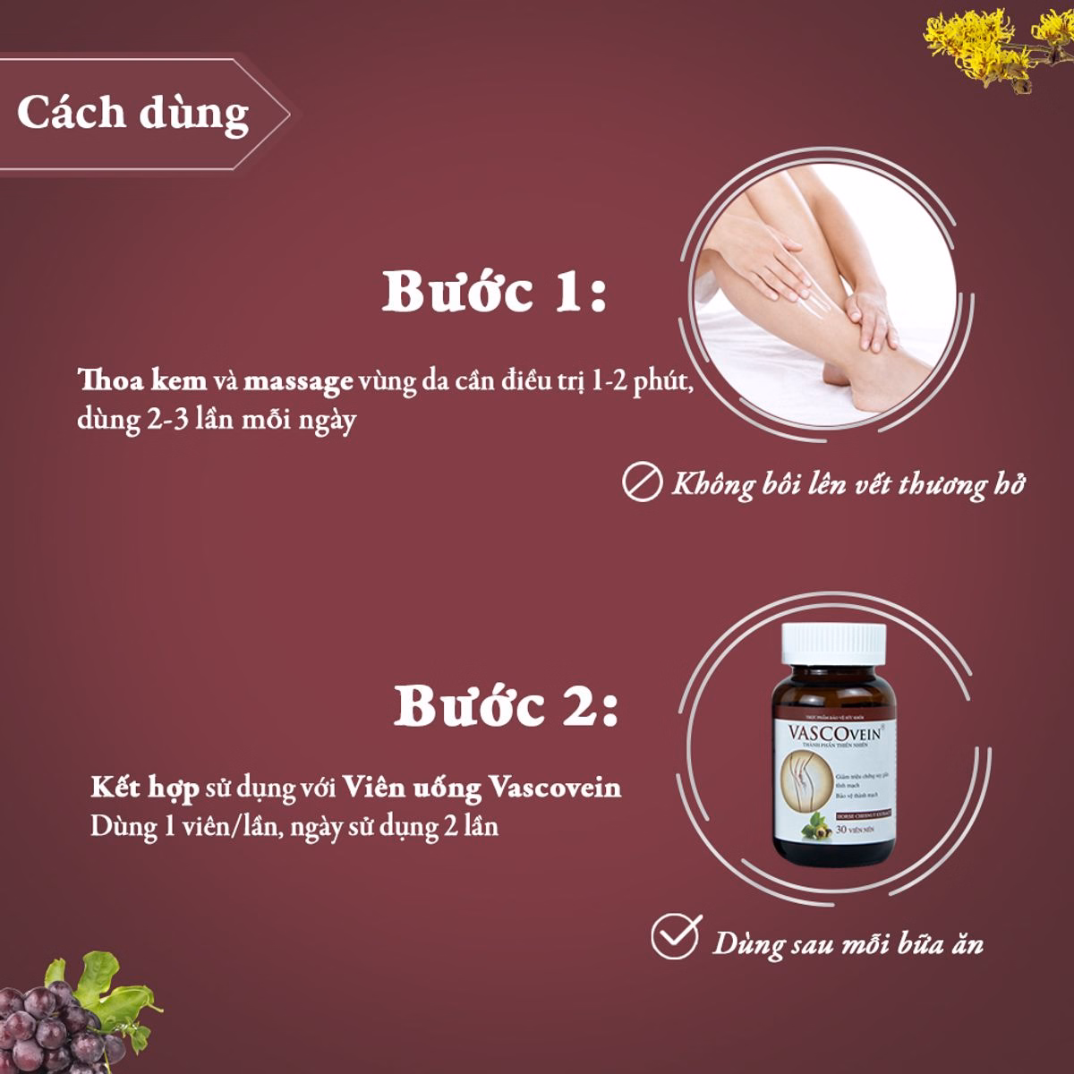 Sản phẩm có thể sử dụng kèm với viên uống Vascovein.