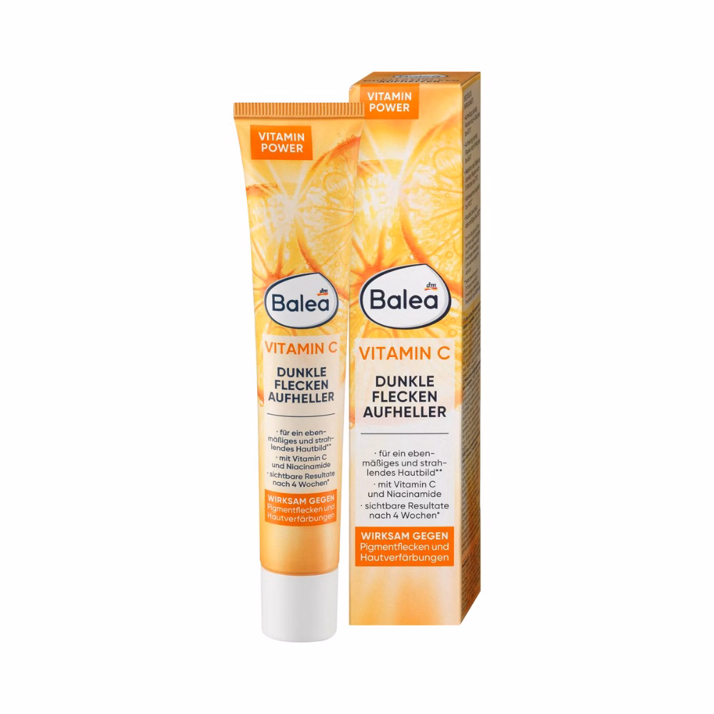 Balea Vitamin C Dark Spots Lightener giúp một làn da đều màu hơn. Sự kết hợp của các hoạt chất với Vitamin C và nia-cinamide có giúp làm sáng. Nia-cinamides làm giảm sắc tố của da. Các đốm đồi mồi xuất hiện ít nhìn thấy hơn và nhỏ hơn. Các đốm sắc tố và sự đổi màu da được giảm rõ rệt hơn nhiều. Vitamin E và C có giúp chống oxy hóa và bảo vệ da khỏi các gốc tự do và ảnh hưởng tiêu cực của môi trường. Nước da sẽ trở nên trông đều màu và rạng rỡ hơn.