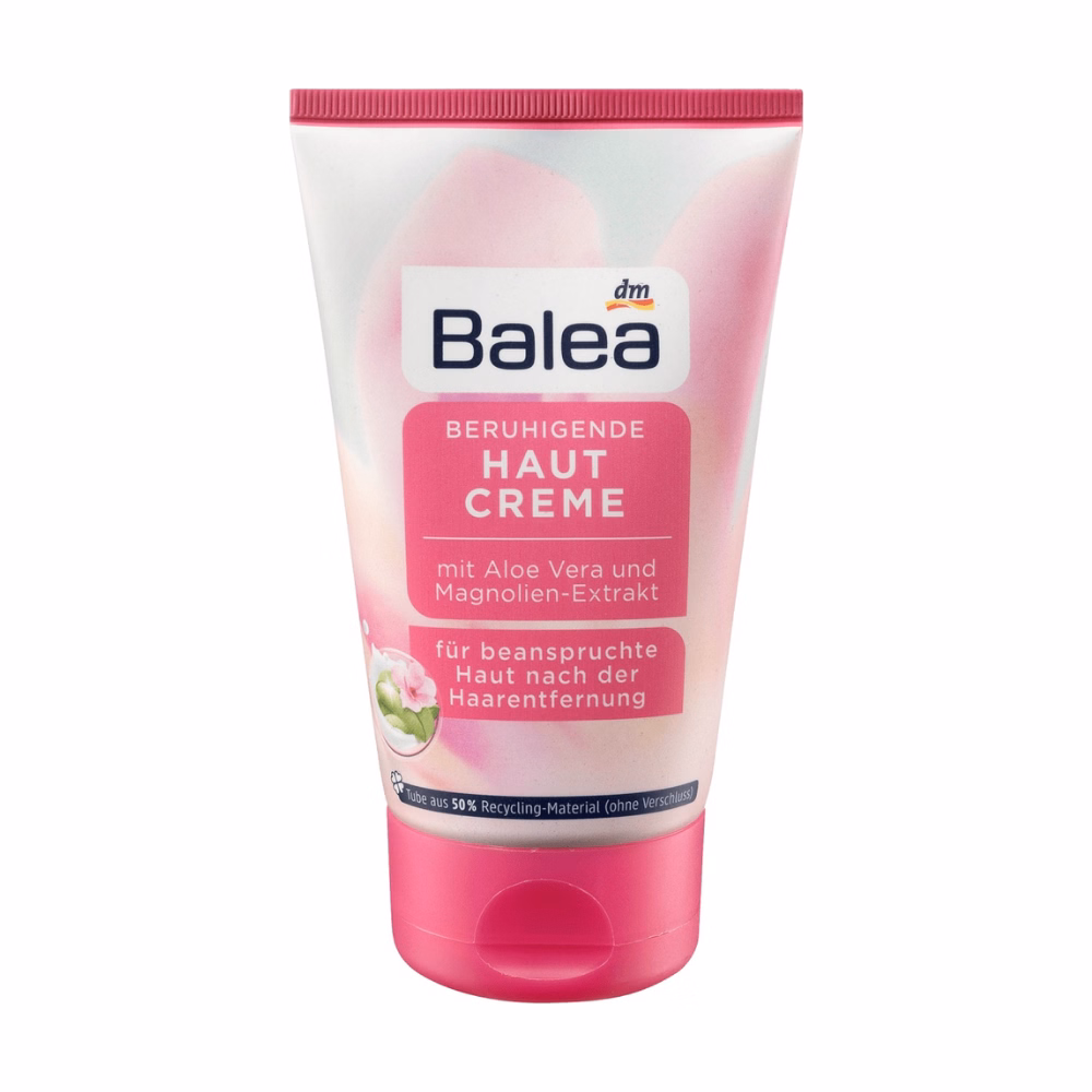 Kem dưỡng sau cạo lông Balea Haut Creme giúp chăm sóc và thư giãn làn da sau khi cạo lông, tẩy lông. Kem thấm nhanh và mang lại cảm giác nhẹ nhàng sau khi cạo lông. Công thức chăm sóc và làm dịu da với chiết xuất lô hội và chiết xuất hoa mộc lan, provitamin B5, bisabolol, allantoin, cung cấp độ ẩm chuyên sâu và bảo vệ làn da không bị khô. Nuôi dưỡng làn da mềm mại. Không có phẩm nhuộm, không có paraben, không có paraben, parafin / dầu khoáng, độ Ph trung tính với da.