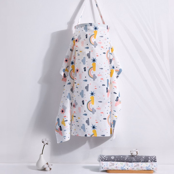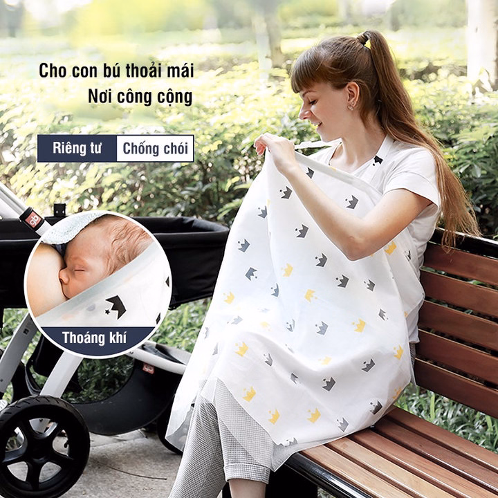 Khăn choàng che cho con bú – giúp mẹ cho bé bú nơi công cộng mà không ảnh hưởng đến bữa ăn đáng yêu của bé, giữ vệ sinh, an toàn, đồng thời giữ cho mẹ kín đáo, riêng tư. Áo choàng cho bé bú sử dụng chất liệu vải cotton mềm, thoáng khí; do đó mỗi lần sử dụng mẹ không cảm thấy bị bí nóng, bé không bị bí mỗi khi bú.
