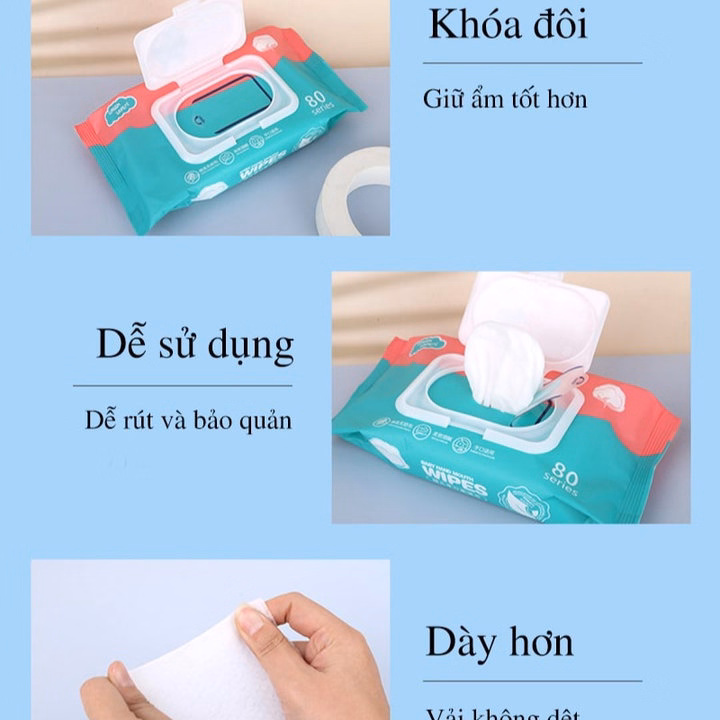 Sử dụng đa năng, mẹ có thể dùng để vệ sinh cho con, lau bàn ghê, tẩy trang, đem theo khi du lịch, rất tiện và gọn