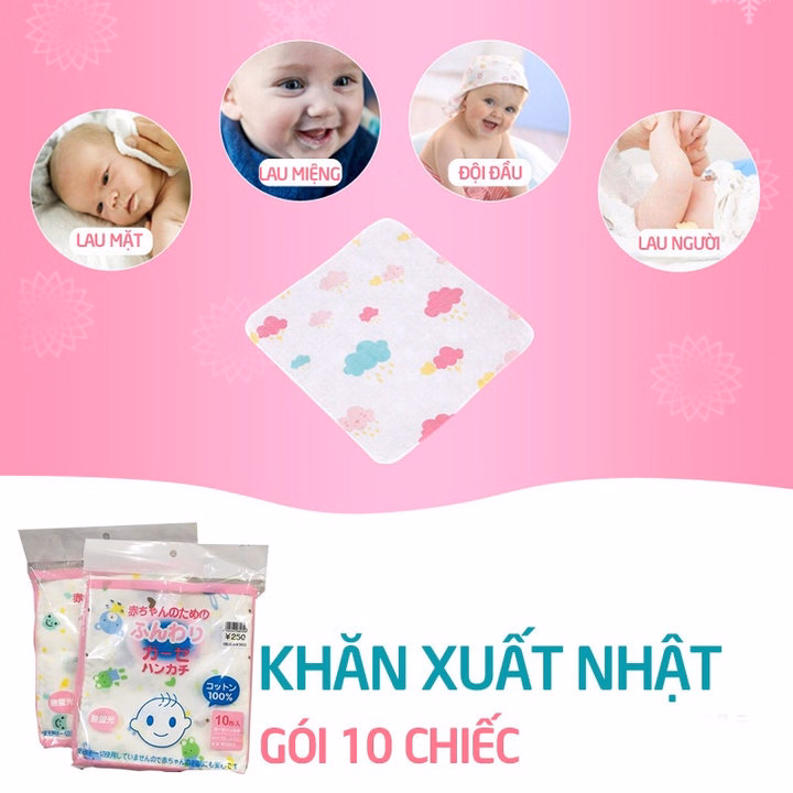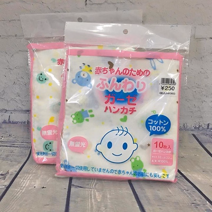 Khăn sữa là một vật dụng không thể thiếu cho các bé sơ sinh bởi tính tiện dụng của sản phẩm. Mẹ có thể sử dụng khăn để vệ sinh cho bé, hoặc dùng lau mặt, thấm mồ hôi. Sản phẩm khăn sữa xuất Nhật in hình với chất liệu được làm từ vải xô thoáng mát giúp mẹ vệ sinh mặt, mũi cho em bé mà không sợ khô, không ảnh hưởng đến làn da nhạy cảm của bé sẽ là một sự lựa chọn hoàn hảo mà mẹ dành cho bé con thân yêu của mình. Một túi sản phẩm gồm 10 khăn sữa. Đây là đồ vật không thể thiếu trong danh sách đồ sơ sinh cho bé