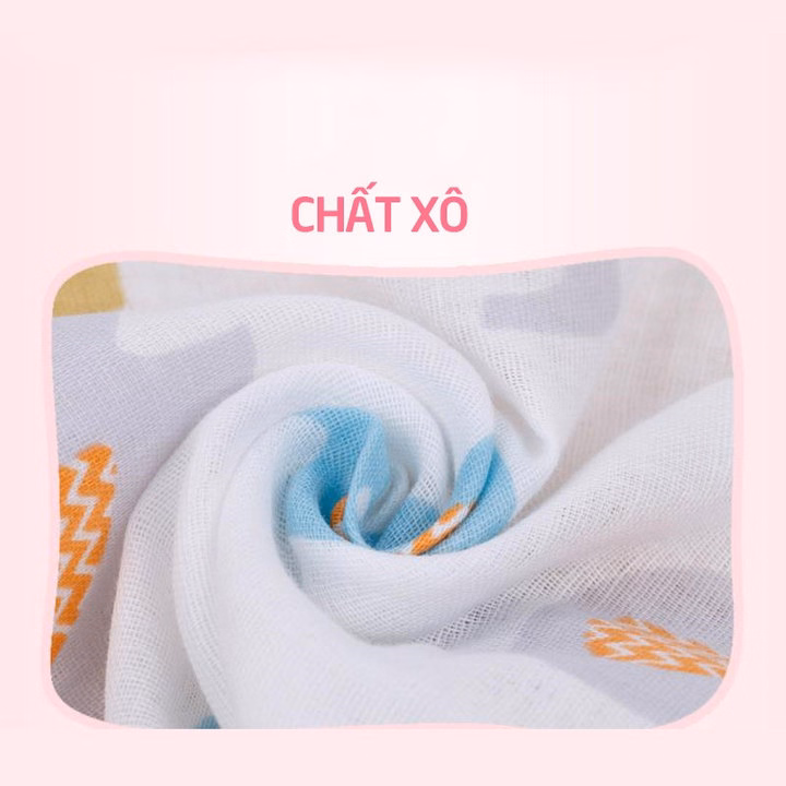 – Khăn sữa xuất Nhật in hình được làm từ sợi vải xô siêu mềm, nhẹ, thấm hút nước tốt tạo cảm giác thoải mái, dễ chịu cho bé khi sử dụng.