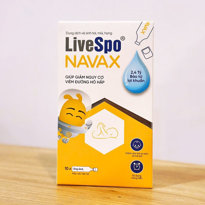 – Mỗi ống Livespo Navax Sơ Sinh có chứa 2,4 tỷ bào tử lợi khuẩn Bacillus clausii và Bacillus subtilis