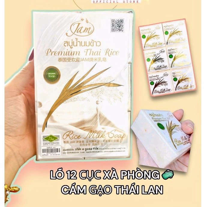 Lốc 12 Cục Xà Bông Gạo Trắng Da Jam Premium Thai Rice 65gr – Gdn