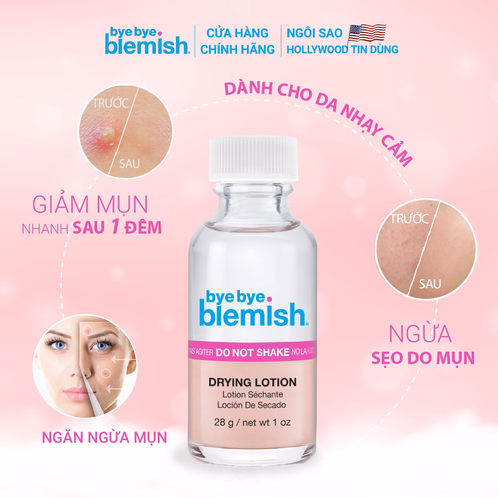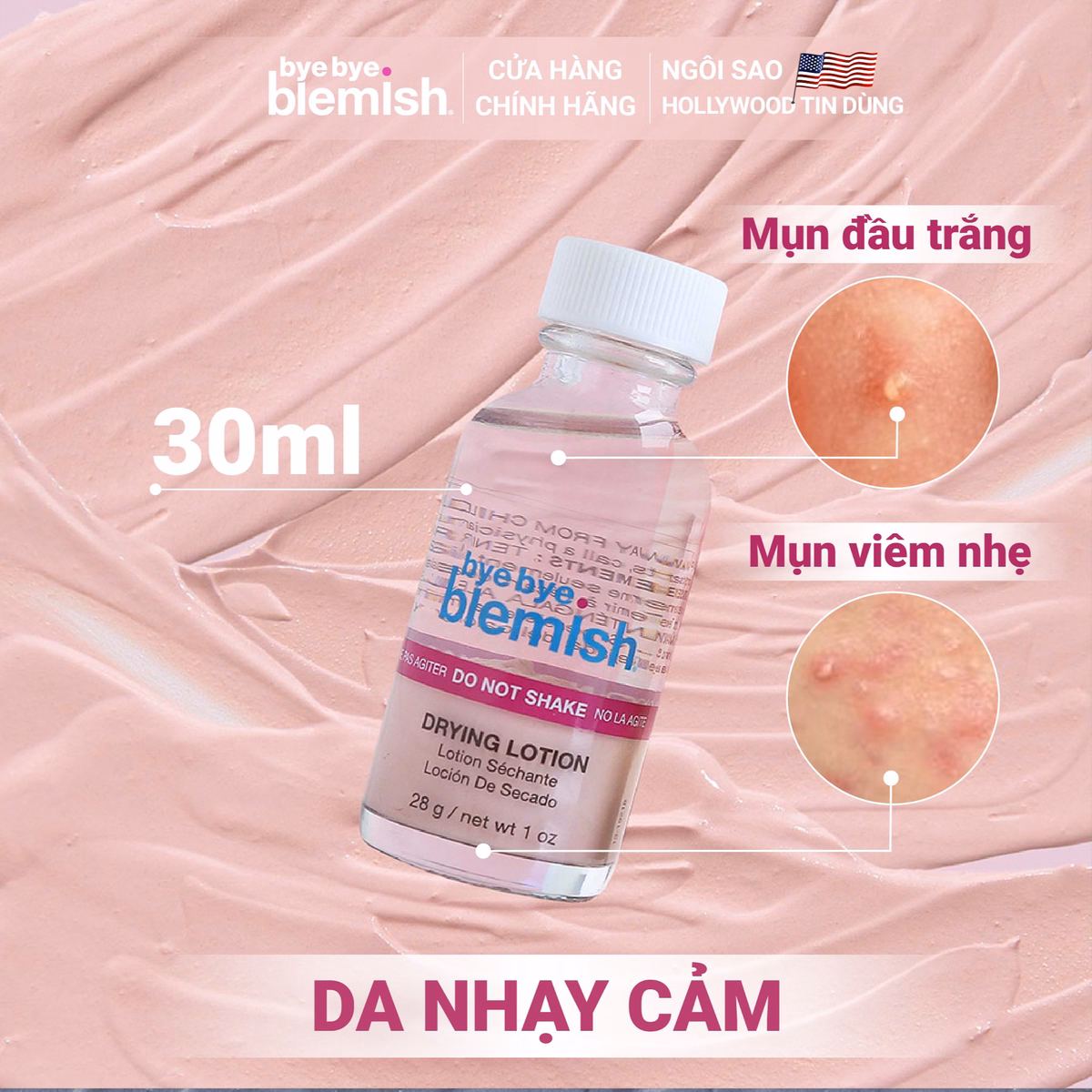 Làn da nhạy cảm dễ bị ảnh hưởng bởi các tác nhân từ bên trong lẫn bên ngoài, dẫn đến xuất hiện các đốm mụn đầu trắng, mụn viêm xấu xí khiến bạn mất tự tin. Chấm mụn Bye Bye Blemish Original Drying Lotion dành cho da nhạy cảm với công thức sử dụng các thành phần khắc tinh của mụn: