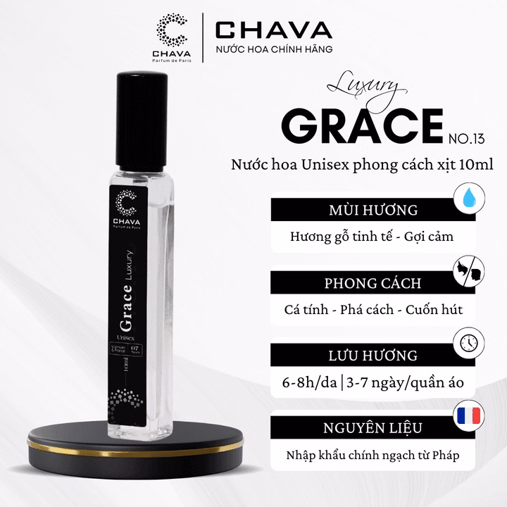 Tên sản phẩm: Nước Hoa Unisex Luxury Grace No.13 10ml Phong Cách Xịt – Chava