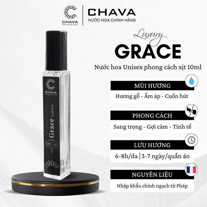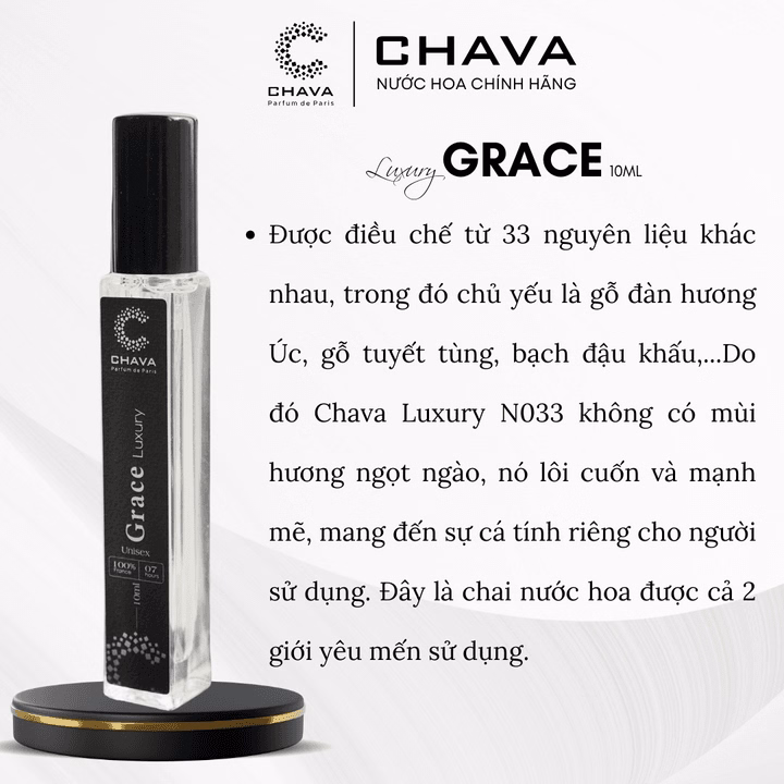 Tên sản phẩm: Nước Hoa Unisex Mini Luxury Grace N033 10ml Phong Cách Xịt – Chava