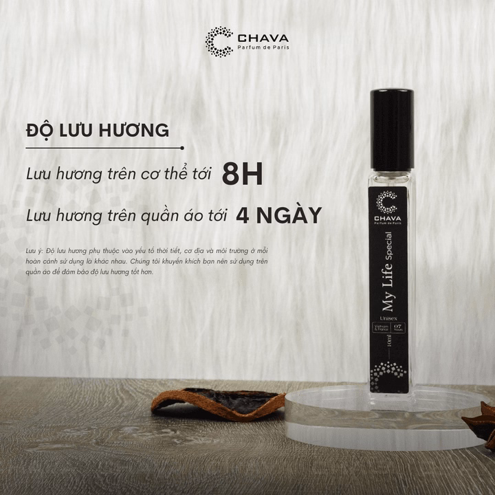 Độ lưu hương: Từ 6-8h trên da, từ 3-7 ngày trên quần áo