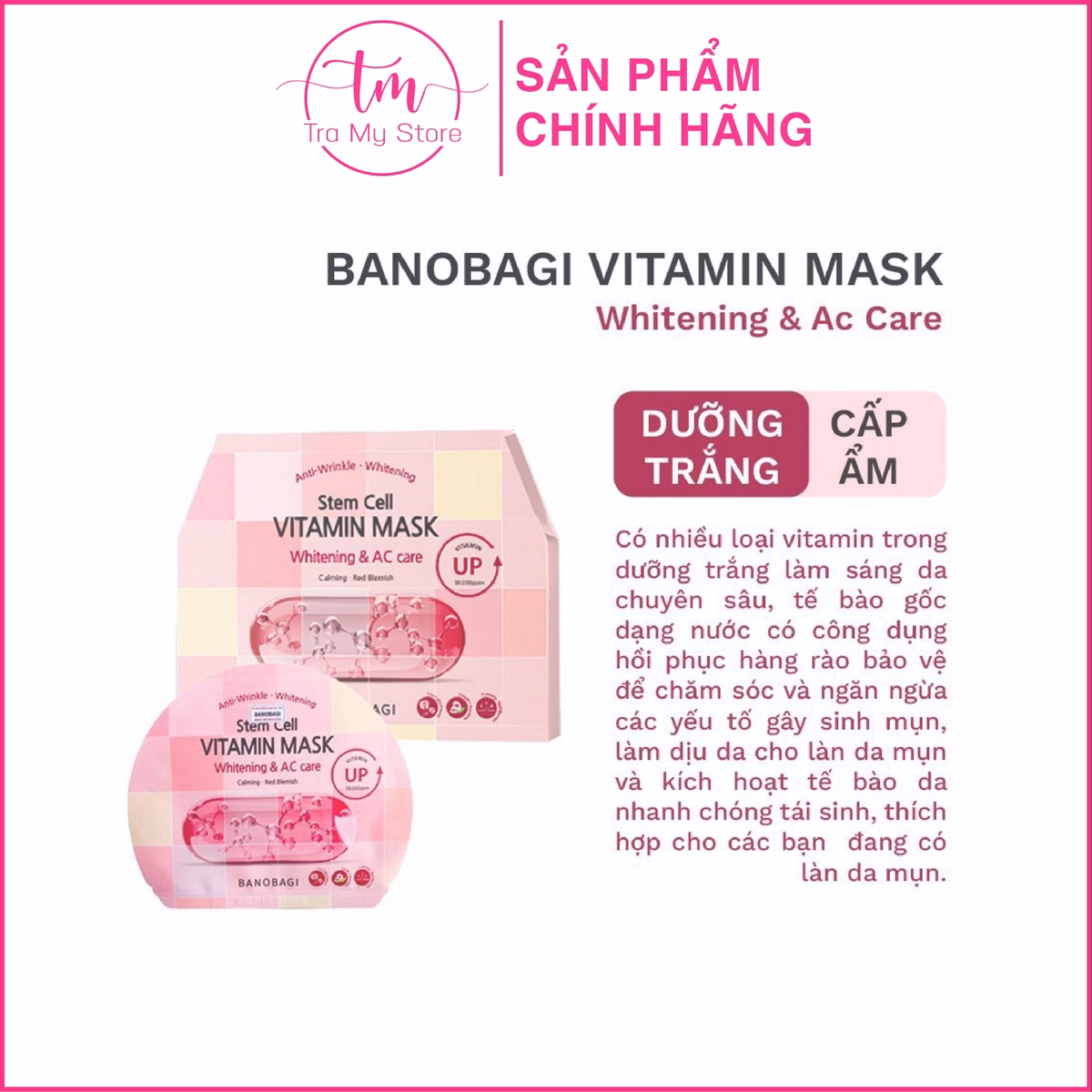 Dẫn đầu với các sản phẩm được “chọn mặt gửi vàng” của các cô gái Hàn Quốc, dòng sản phẩm Mặt Nạ Banobagi Stem Cell Vitamin Mask là loại mặt nạ giàu vitamin với hàm lượng cao, được chiết xuất hoàn toàn từ nguồn nước khoáng tự nhiên và các loại trái cây như cây xương rồng, lô hội, quýt Hanrabong nổi tiếng được thu hoạch tại đảo Jeju Hàn Quốc.