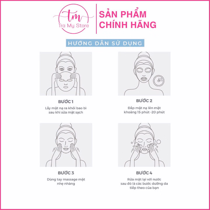 Bước 2: Lấy tờ mặt nạ ra khỏi gói, đắp lên mặt của bạn trong vòng 20-25 phút.