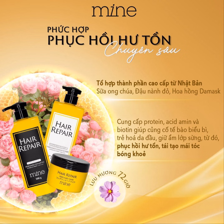 Mặt Nạ Ủ Tóc Phục Hồi Hư Tổn Nước Hoa Mine 500G