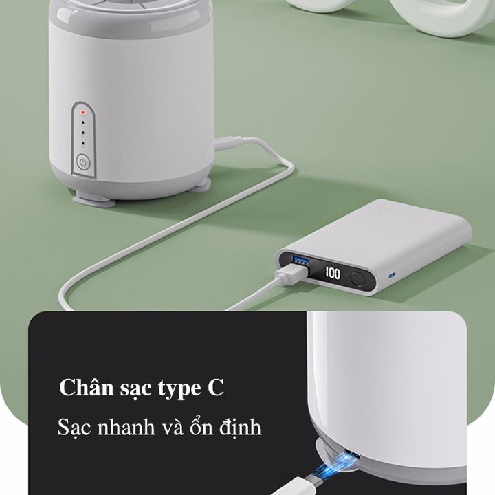 Đầu sạc Usb – Type C thuận tiện giúp mẹ có thể sử dụng sạc dự phòng để sạc và sử dụng chiếc máy lắc sữa mọi nơi