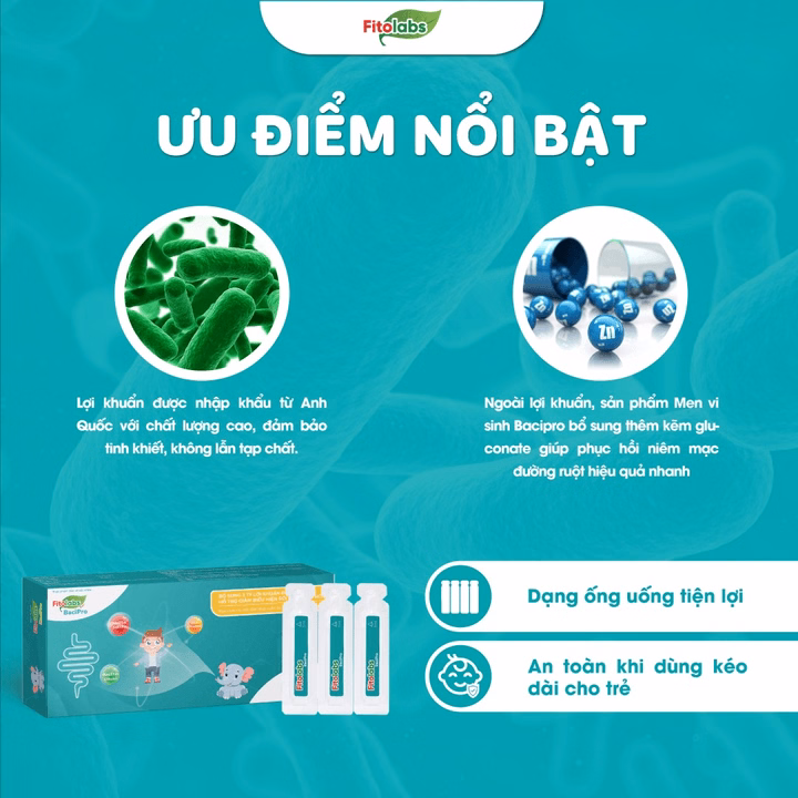 ✨ Men Vi Sinh Dạng Ống Fitolabs Bacipro Cung Cấp 3 Tỷ Lợi Khuẩn Và Kẽm Giúp Cải Thiện Rối Loạn Tiêu Hóa, Tiêu Chảy, Táo Bón, Phân Sống, Biếng Ăn – Hộp 20 ống x 5ml ✨