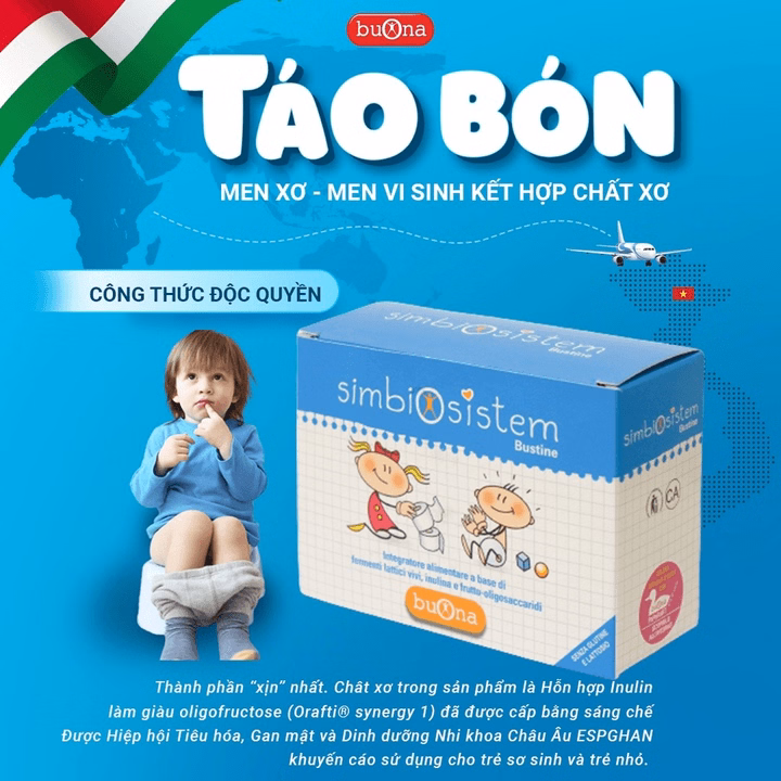 Men Vi Sinh Bổ Sung 10 Tỷ Lợi Khuẩn Và Chất Xơ, Giảm Táo Bón, Giúp Ăn Ngon – Hộp 20 Gói 2G Buona Simbiosistem Bustine