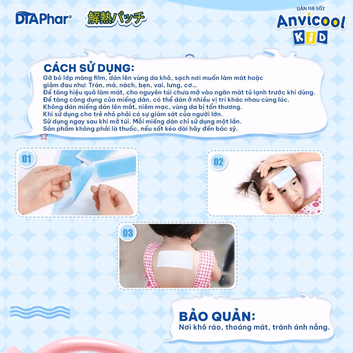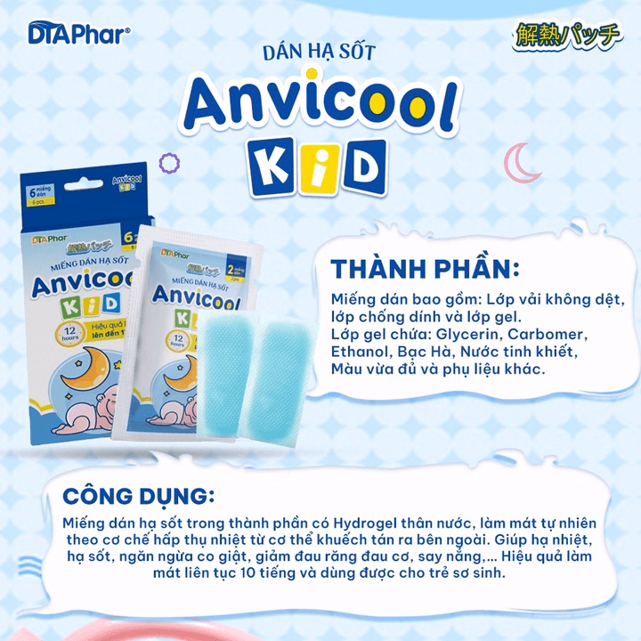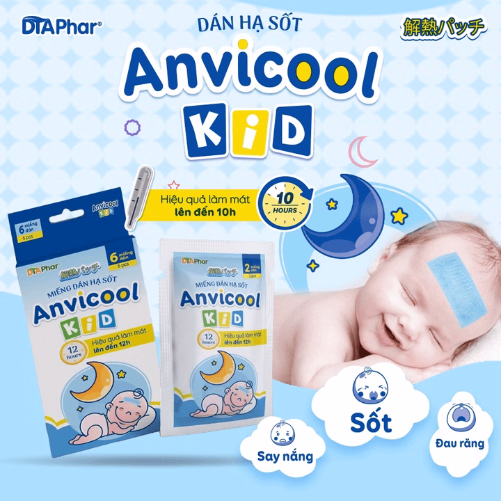 Miếng Dán Hạ Sốt Cho Bé Anvicool Kid Làm Mát, Hạ Nhiệt, Giảm Sốt Nhanh Chóng, Hộp 3 Gói 6 Miếng