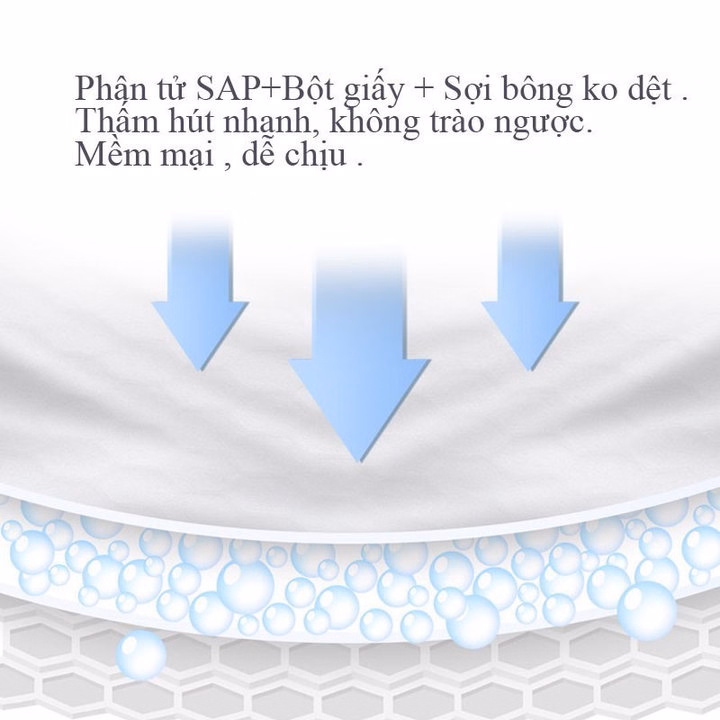 Thành phần: Polyolefin, Pulp tissue, Fluff pulp, Polyarylic acid, Sodium salt, Polyetthylene, Synthetic, Rubber hotlmelt, Silicone coated paper, Polyurethane, Polypropylene
