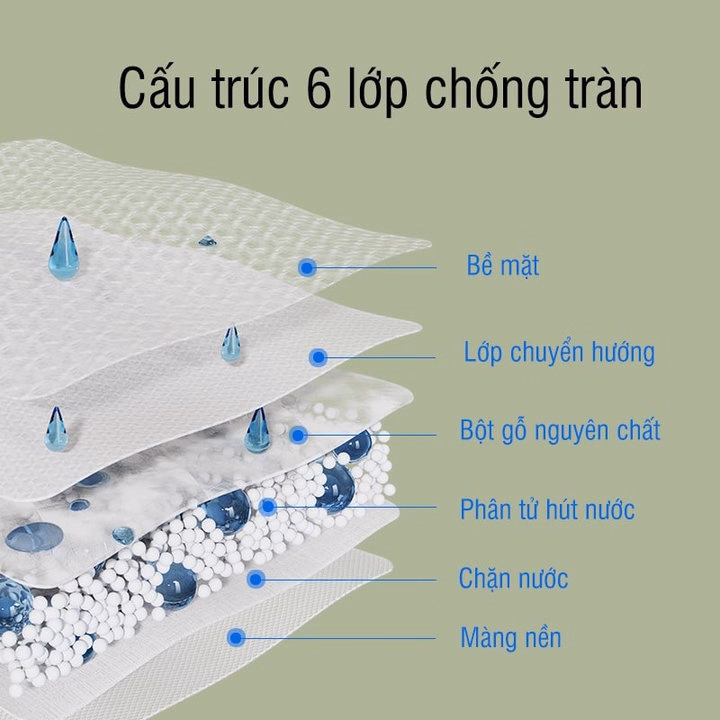 Thành phần: Polyolefin, Pulp tissue, Fluff pulp, Polyarylic acid, Sodium salt, Polyetthylene, Synthetic, Rubber hotlmelt, Silicone coated paper, Polyurethane, Polypropylene