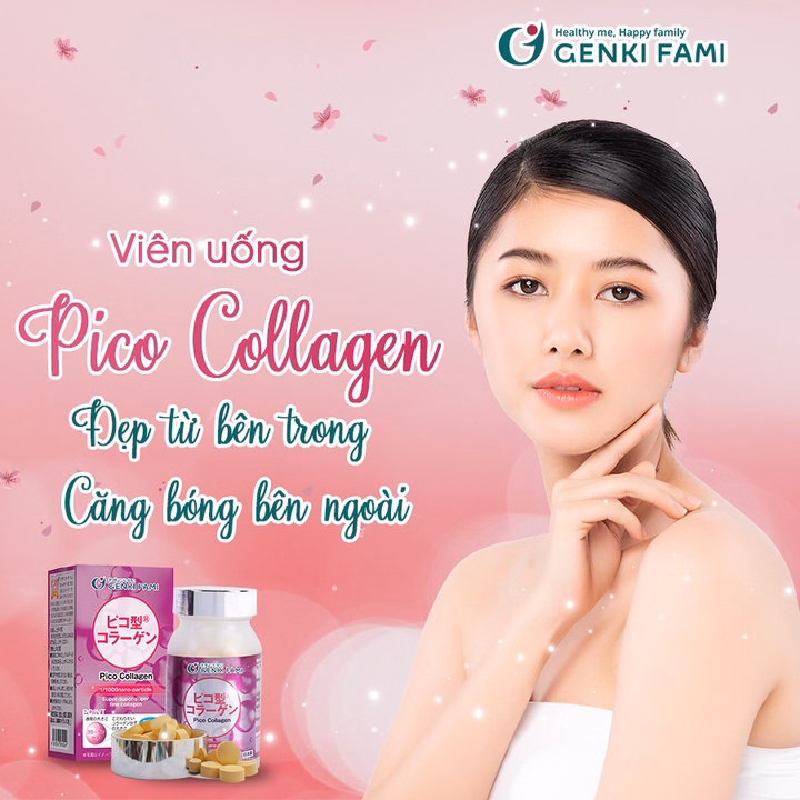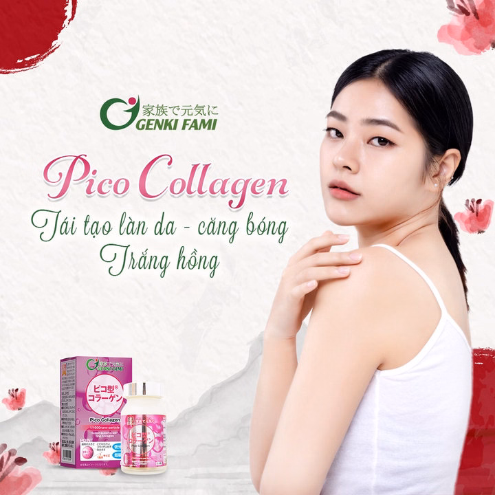 Tên sản phẩm: Viên Uống Hỗ Trợ Phục Hồi Làn Da Pico Collagen – Hộp 180 Viên – Genki Fami