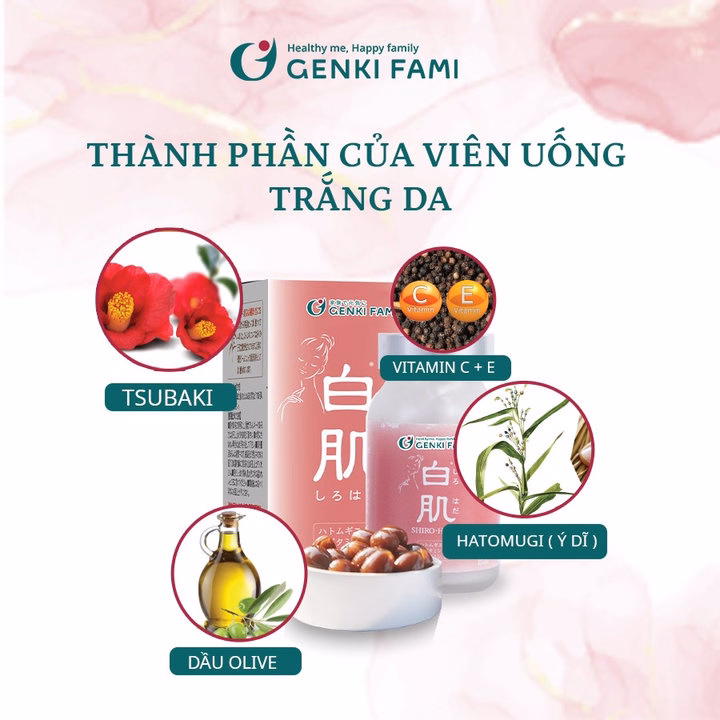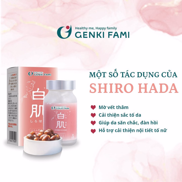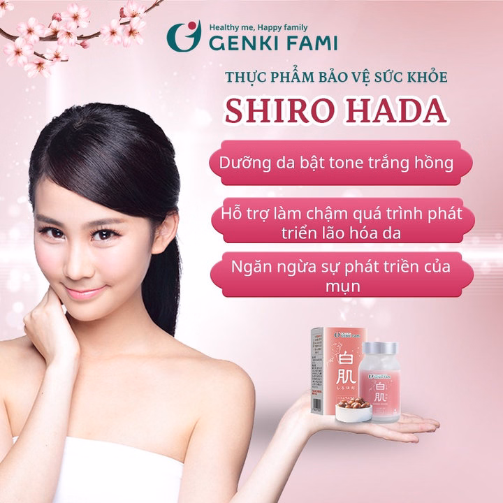 Tên sản phẩm: Viên Uống Làm Trắng Da Từ Thiên Nhiên Shiro Hada – Hộp 90 Viên – Genki Fami