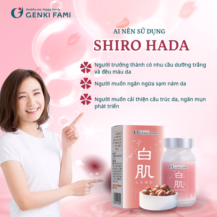 Shirohada là viên uống trắng da nội sinh được chiết xuất hoàn toàn từ nguyên liệu tự nhiên, giúp mang lại hiệu quả dưỡng trắng da lâu dài và an toàn.