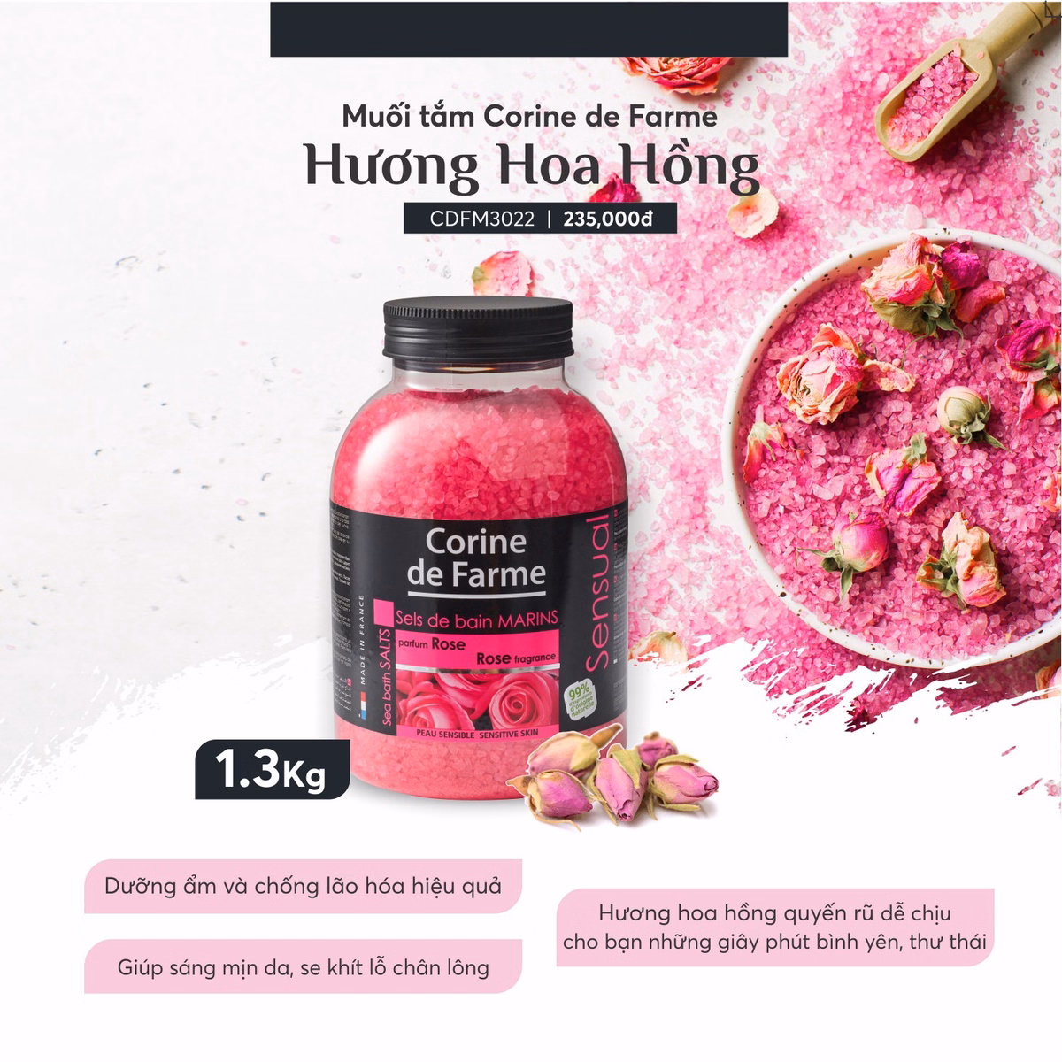 Muối tắm Corine de Farme Hương Hoa Hồng dưỡng mềm mịn da tẩy tế bào chết Corine de Farme 1.3Kg