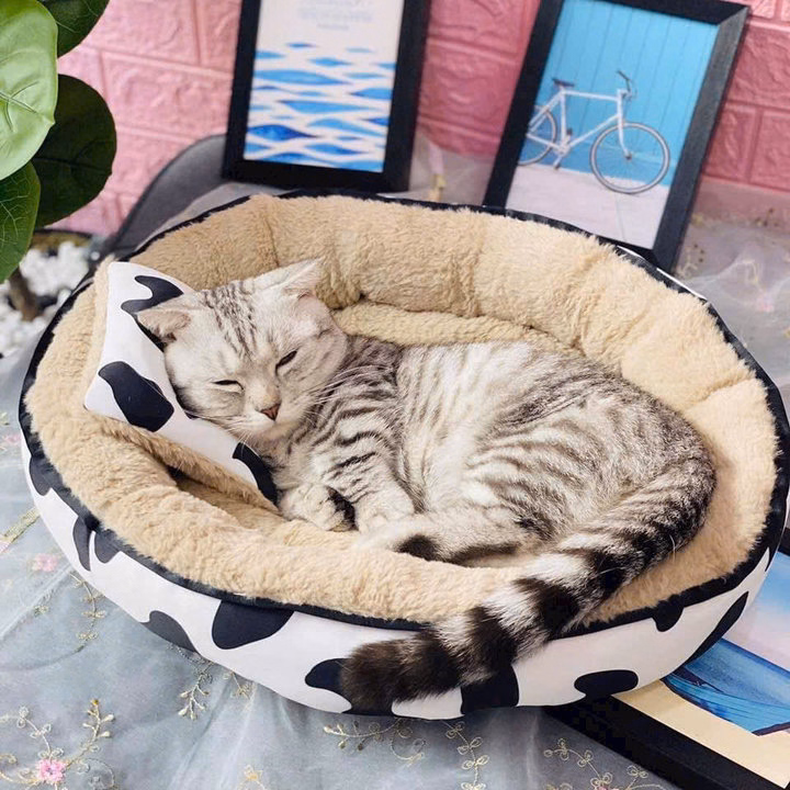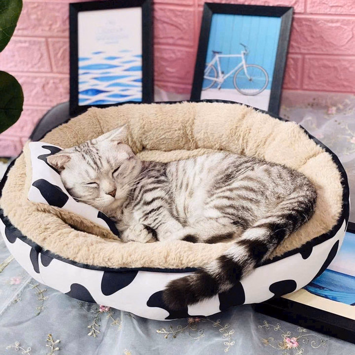 Nệm Bò Sữa Tròn Siêu Êm Mềm Mịn Dưới 6kg Dành Cho Thú Cưng Chó Mèo