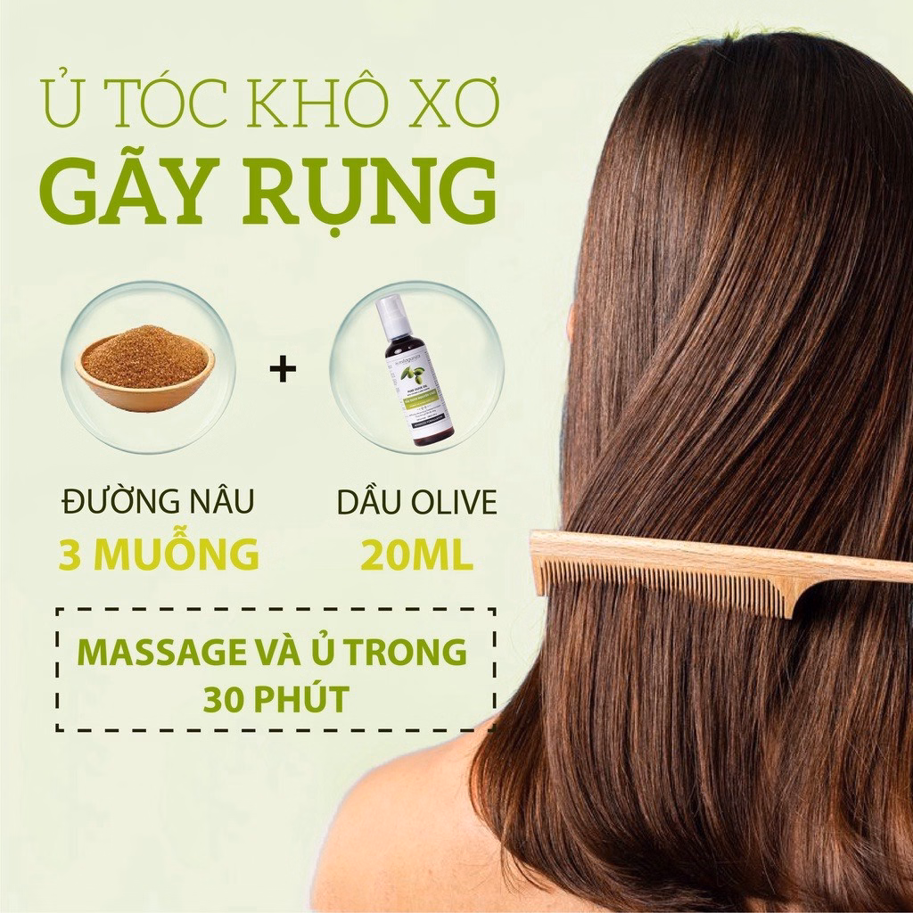 Ủ tóc tóc mềm mượt, kích thích tóc mọc nhanh: Trước khi gội đầu 15’, thoa một lượng vừa đủ dầu Olive lên tóc và massage nhẹ nhàng, giúp tóc trở nên bóng mượt hơn.