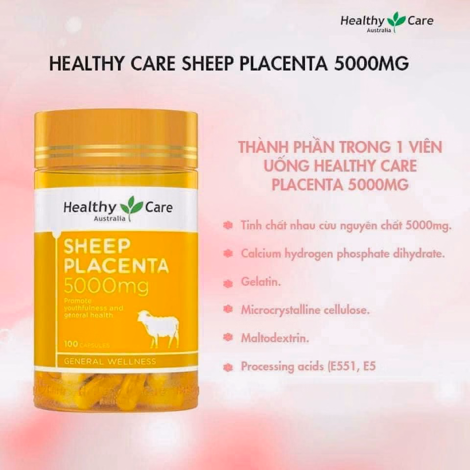 – Viên uống nhau thai cừu Healthy Care 5000mg giúp bổ sung vi khoáng, acid amin giúp làm đẹp da