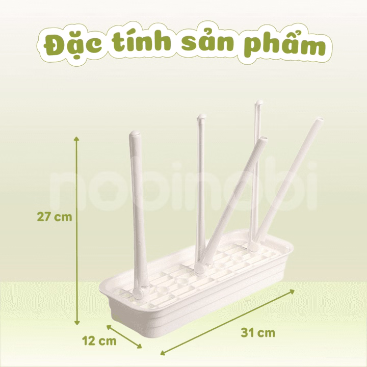 5. Hướng dẫn sử dụng: Sau khi rửa sạch các dụng cụ ăn uống như bình sữa, bát, cốc… thì úp ngược vào các thanh dựng và điều chỉnh chiều hướng thanh dựng tùy theo ý muốn.