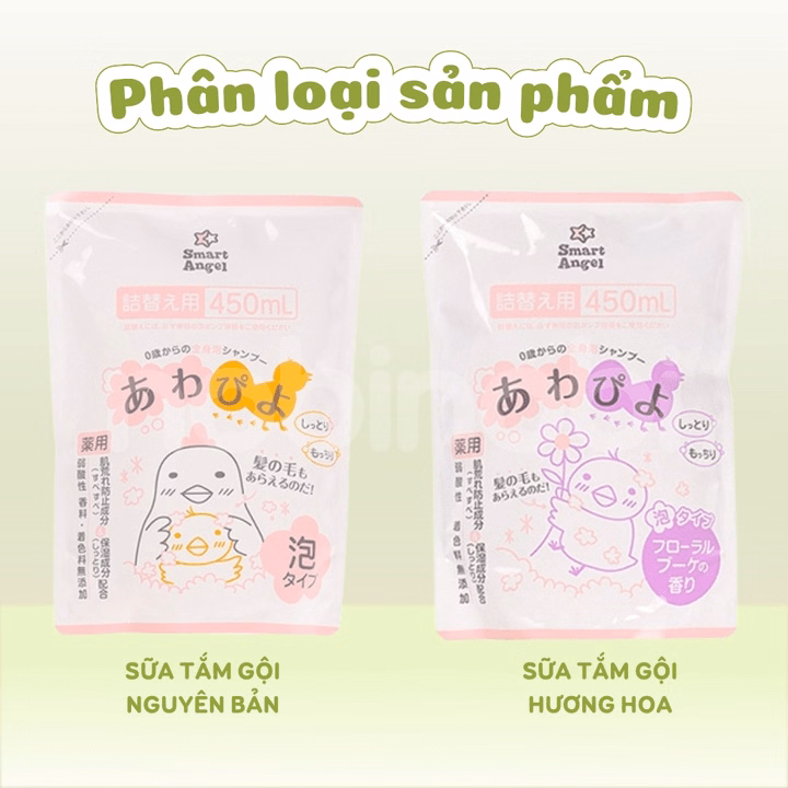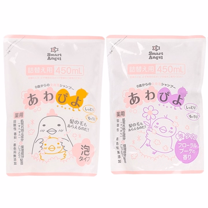 (Nội Địa Nhật) Sữa Tắm Gội Toàn Thân Awapiyo Smartangel Dịu Nhẹ, An Toàn Và Lành Tính Cho Bé 450Ml X 2 Gói