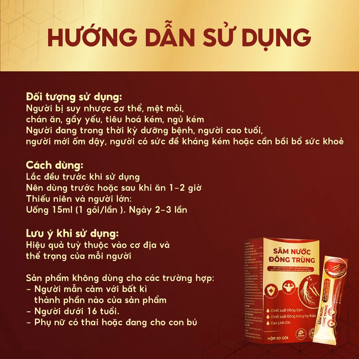 Nước Đông Trùng Hạ Thảo Giúp Bồi Bổ Cơ Thể Tăng Sức Khỏe Hỗ Trợ Ăn Ngủ Ngon Giảm Mệt Mỏi Hộp 20 Gói