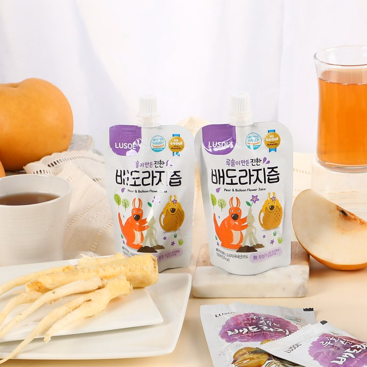– Nước ép lê và rễ hoa chuông đen nguyên chất Lusol không chứa chất phụ gia, gồm 85% Lê Hàn Quốc và 15% Rễ hoa chuông đen Hàn Quốc được sản xuất trên dây chuyền đạt chuẩn Haccp.