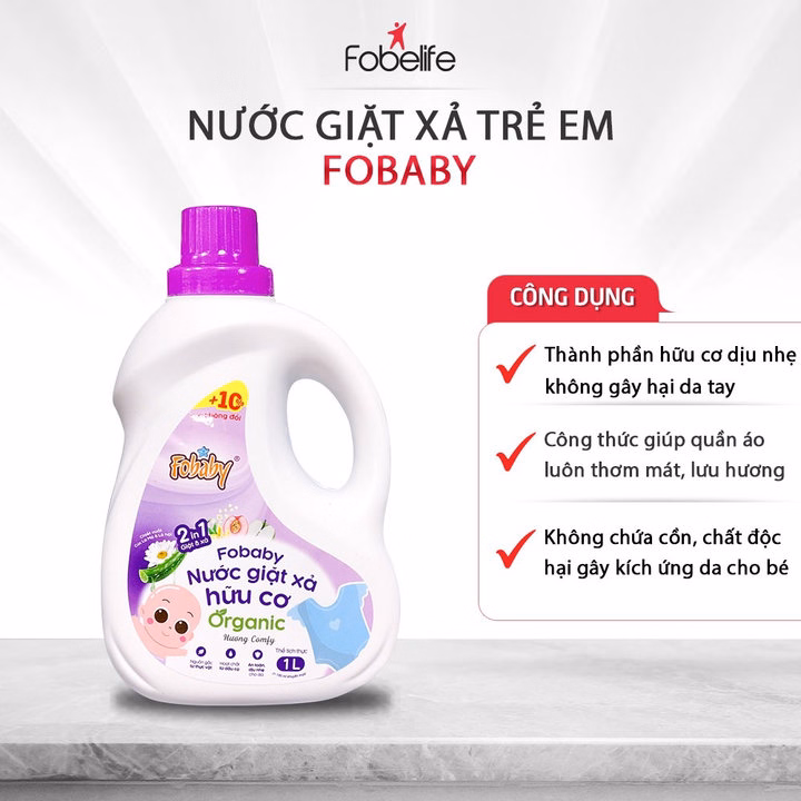 Nước Giặt Xả Hữu Cơ Em Bé Fobaby 1000Ml Lưu Hương Lâu An Toàn Cho Bé- Fobelife