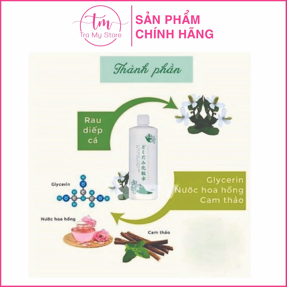 + Nước hoa hồng diếp cá xoa dịu các đốm mụn, se nhỏ và làm khô nhân mụn, trả lại làn da khô thoáng, mát mẻ.