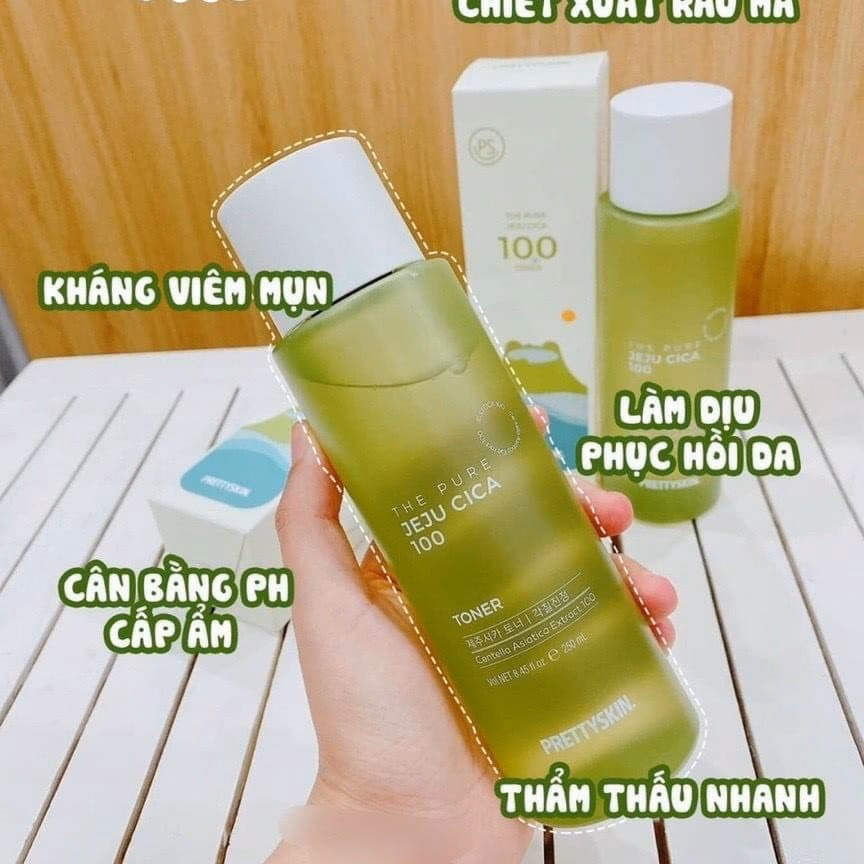 Nước Hoa Hồng Toner Chiết Xuất Rau Má Pretty Skin Hàn Quốc The Pure Jeju Cica 100 Toner 250ml