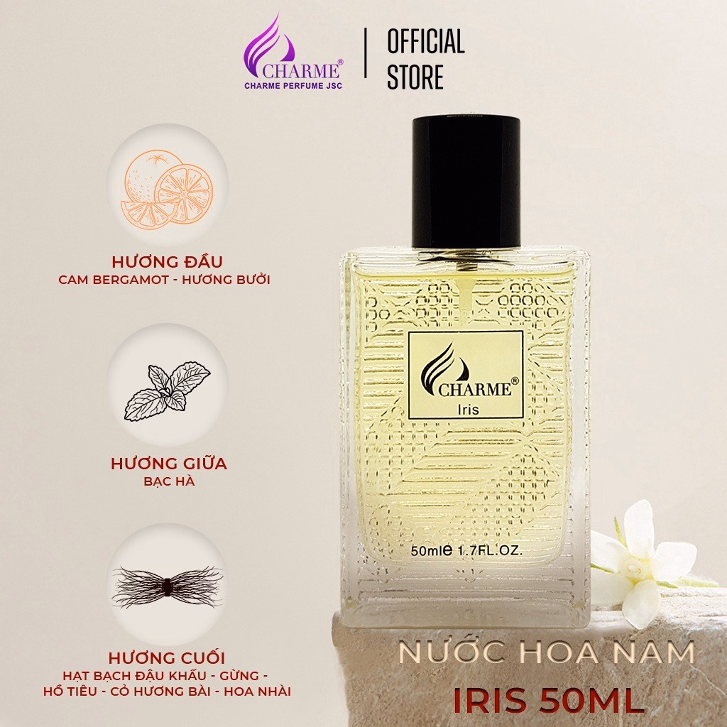 Nước Hoa Nam Charme Iris 50Ml Lưu Hương Lâu Nam Tính, Đầy Cuốn Hút Đúng Chất Qúy Ông _ Nước Hoa Chính Hãng