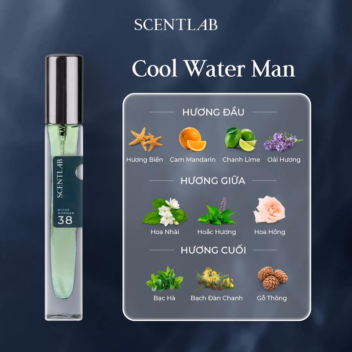 Nước hoa nam Scentlab No.38 hương biển Norman Cool Water Man hương thơm tươi mát sảng khoái lưu hương 10h mini 10ml