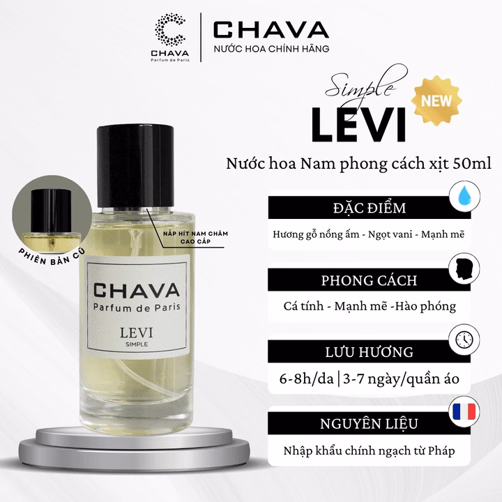 Tên sản phẩm: Nước Hoa Simple Levi 50ml (Phiên Bản Nắp Nam Châm Cao Cấp) – Chava