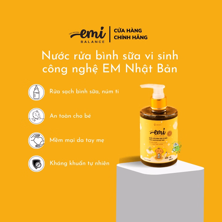 – Nước rửa bình sữa Emi Balance công nghệ vi sinh đảm bảo an toàn cho sức khỏe của trẻ dung tích 280ml