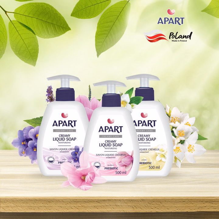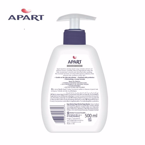 Mô tả dòng sản phẩm: Nước rửa tay dưỡng da Apart với đặc trưng là dạng kem mềm mịn giúp dưỡng ẩm và sảng khoái sau khi rửa. Công thức đã được làm giàu với prebiotics tự nhiên giúp cải thiện tình trạng của da.