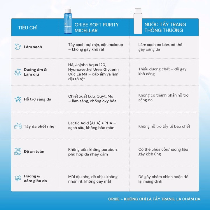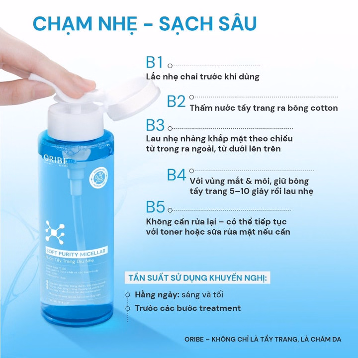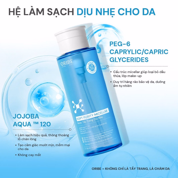 Làm sạch da luôn được xem là một trong những bước chăm sóc da vô cùng quan trọng, bởi da chưa đủ sạch thì các dưỡng chất khó thể nào mà thẩm thấu vào da và phát huy mọi tác dụng. Vì thế, ngoài bước sử dụng sữa rửa mặt thì tẩy trang được xem là bước skincare không thể nào thiếu của mọi tín đồ làm đẹp. Tẩy trang hai pha Oribe góp phần lấy đi lớp make up, bụi bẩn, bã nhờn một cách nhanh chóng đồng thời trả lại cho bạn làn da thông thoáng và mềm mịn.