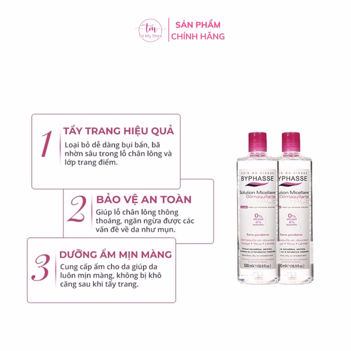 Nước Tẩy Trang Không Cồn 3 In 1 500Ml – Byphasse